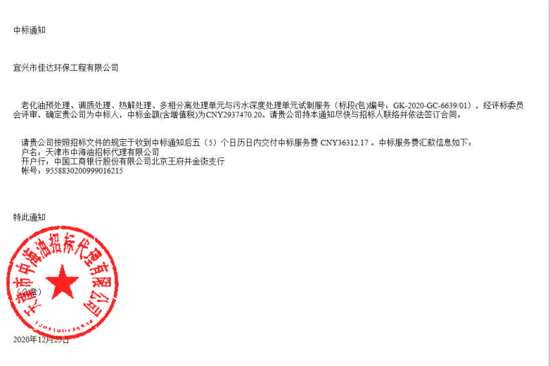 中標(biāo)中海油老化油預(yù)處理相關(guān)項(xiàng)目  2021/3/10